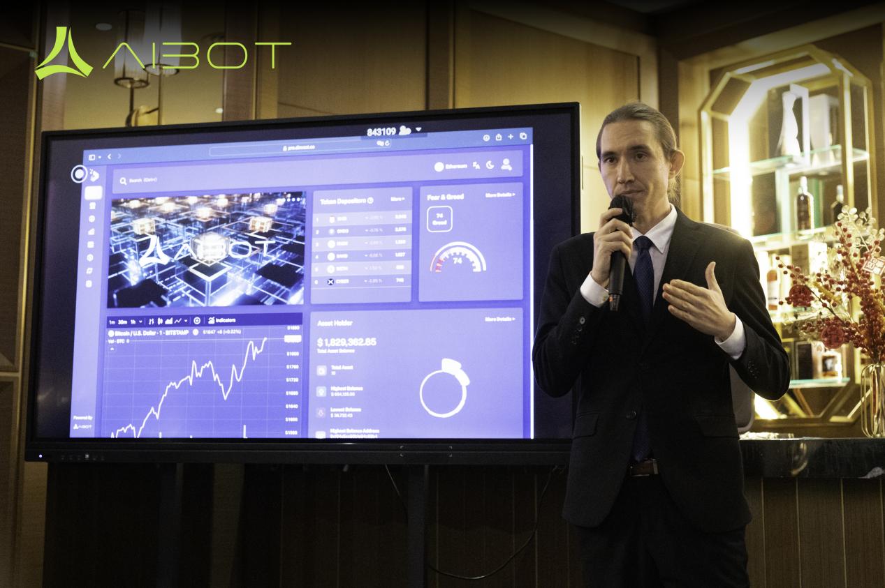 AIBOT技术部代表Vadim先生详尽地向与会者揭示了Dinvest作为一个市场差异化AI产品的独特之处。AIBOT运营经理Laxus则贡献了深刻的见解,精心总结了AIBOT的“造血逻辑”和生态模型,并现场演示如何参与AIB质押生态过程。随后,CoinUP交易所的代表人Carla,不仅详细讲解了2024年的全球币趋势,还深入探讨AIBOT在这一趋势中的潜在前景,并向参与者介绍CoinUP交易所高质量服务及其处理量。